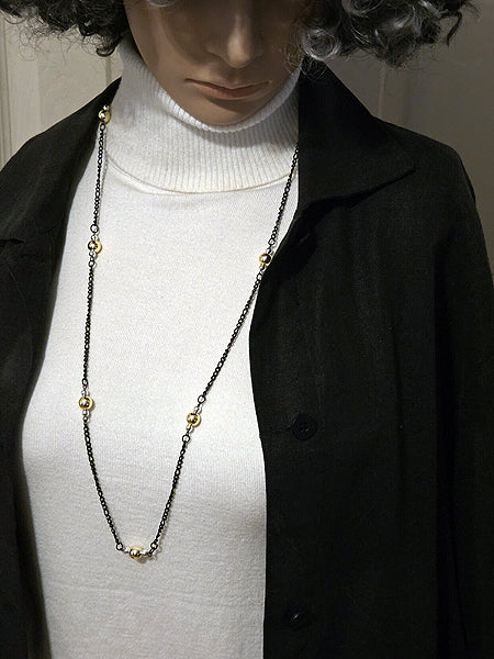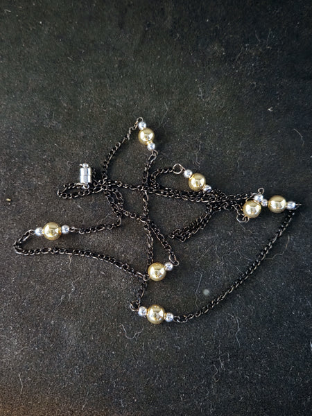 30" CONVERTIBLE GOLD & STERLING SILVER , MAGNETIC CLASP, GUNMETAL CHAIN NECKLACE
