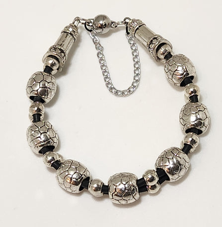 Discover our exquisite antique silver big round bead bracelet, elegantly handcrafted with a double latex-free rubber cord.