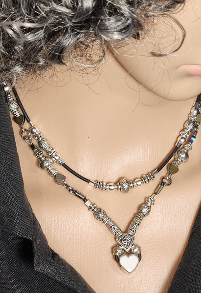 DOUBLE NECKLACE WITH ANTIQUE SILVER HEART AND STERLING SILVER BEADS CHOKER