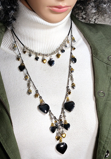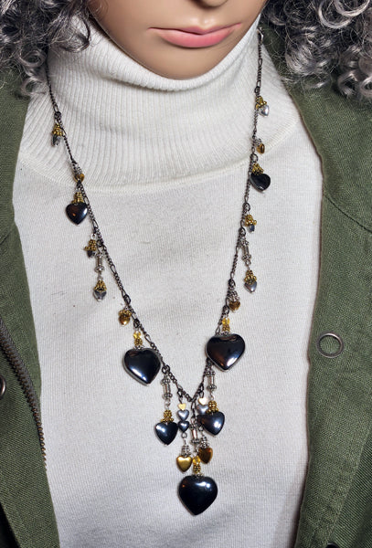 Talk about wearing your heart on a sleeve, We combined 25mm hearts with 12mm, 8mm and 6mm hearts on a gunmetal chain to give this necklace a vintage look.