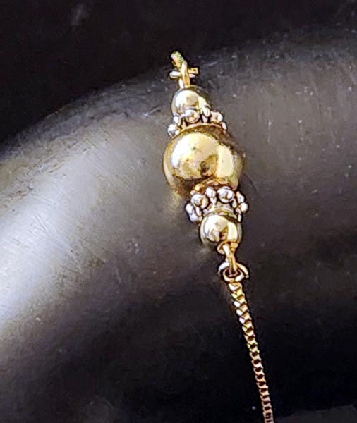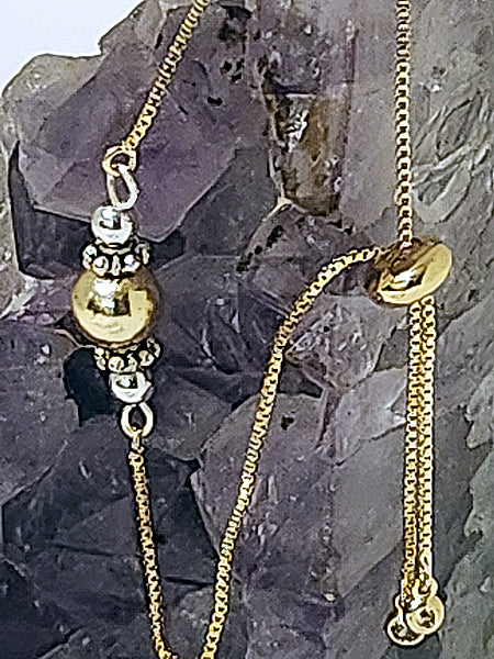LARGE 18k GOLD BEAD WITH STERLING SILVER OVER HEMATITE ON AN ADJUSTABLE GOLD CHAIN