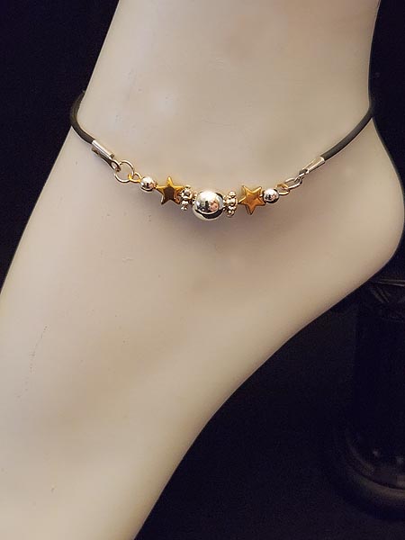 Our newest adjustable ANKLET is with 14K gold stars, plus sterling silver balls which gives this piece an upgrade in looks and sophistication.