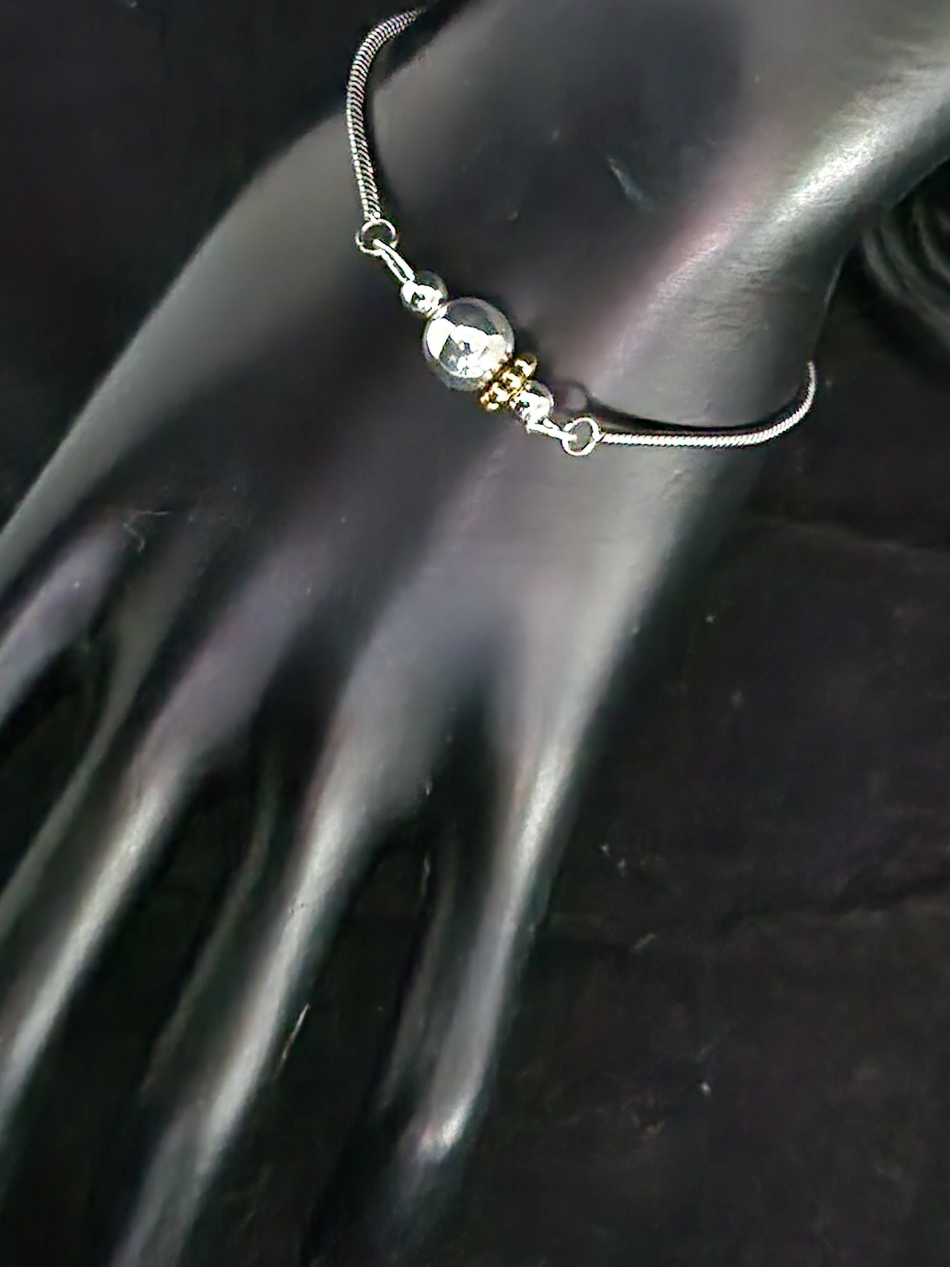 LARGE STERLING SILVER BEAD OVER HEMATITE ON AN ADJUSTABLE SILVER CHAIN