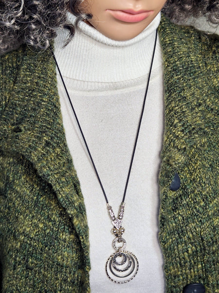 MEDIUM 4 RING ANTIQUE SILVER CIRCLES ADJUSTABLE NECKLACE