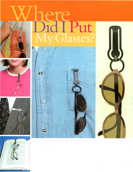 I invented and patented "The Where Did I Put My Glasses Clip," so you will always know where your glasses are.!